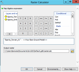 - Output Raster: Sparta_BGM_<<width>>_<<height>>.img (save in your working directory)